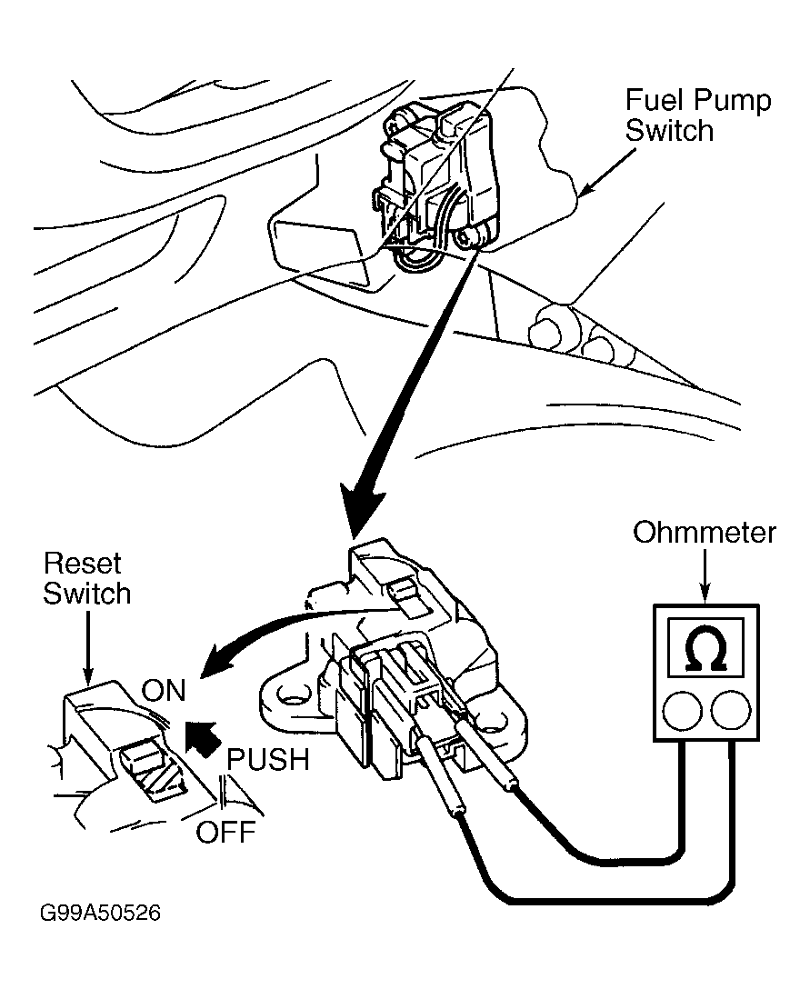 NOTE: Fuel pump switch may also be referred to as fuel pump inertia switch or fuel pump control switch.