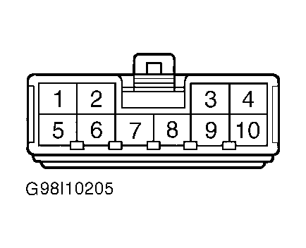 - Remove trunk trim cover from behind rear seat in luggage compartment. Disconnect fuel pump Electronic Control Unit (ECU) 10-pin connector in left side of luggage compartment. Turn ignition on. Measure voltage between ground and terminal No. 10 (Black/Red wire) at fuel pump ECU connector. See Fig 1. If voltage is 9-14 volts, go to next step. If voltage is not 9-14 volts, check for open or short in wiring harness between EFI main relay and fuel pump ECU. See ENGINE PERFORMANCE in SYSTEM WIRING DIAGRAMS article in ELECTRICAL.
