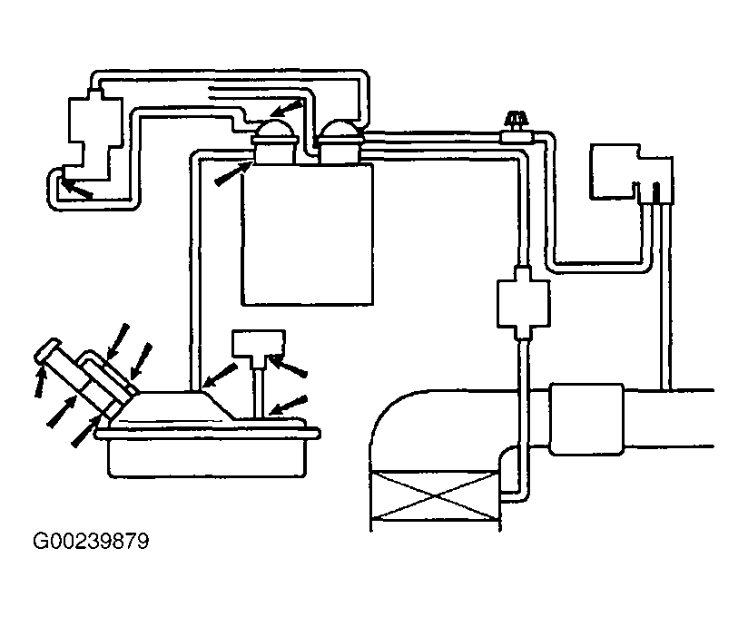 - Check vacuum hoses. See Figure. Repair as necessary. If okay, go to next step.