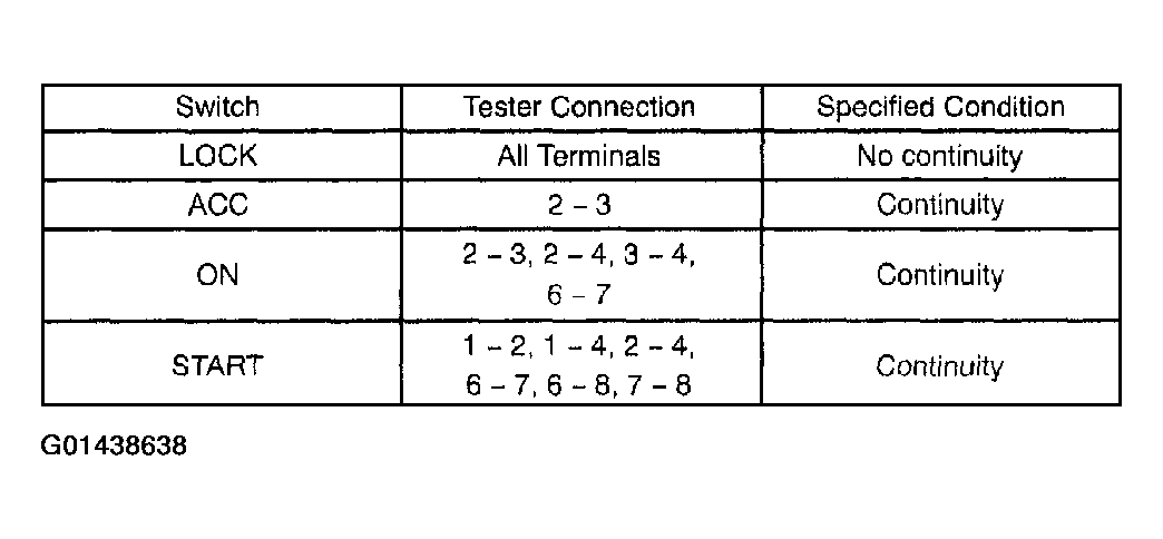 5. INSPECT IGNITION OR STARTER SWITCH ASSY