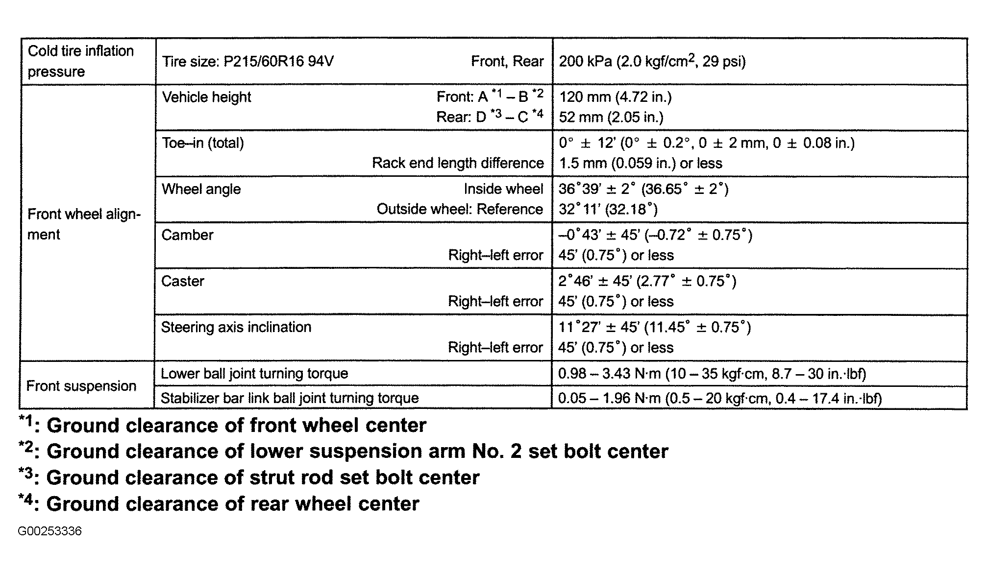 Fig 1: Front Wheel Alignment Specifications (ES 330)