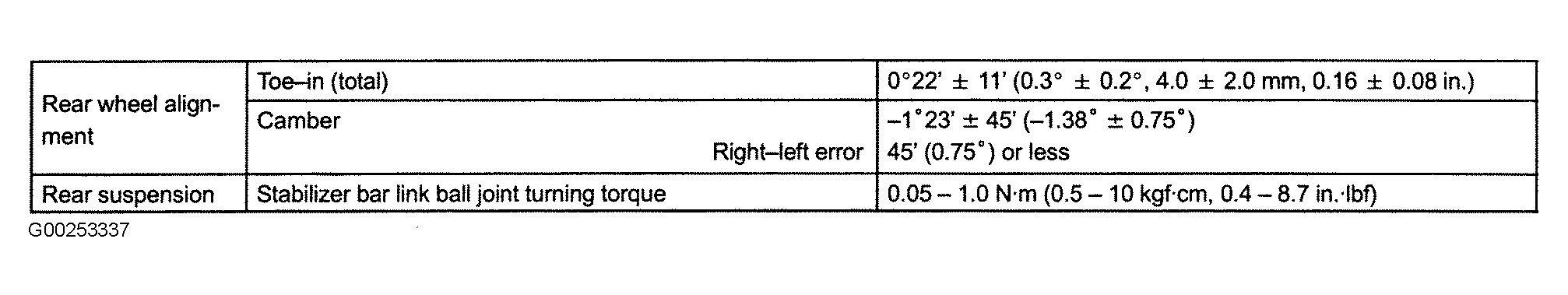 Fig 2: Rear Wheel Alignment Specifications (ES 330)