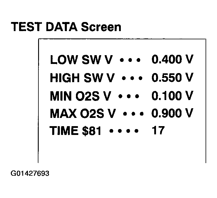 If the TEST DATA value appearing on the scan tool is out of the standard value, the O2S is malfunctioning. If it is within the standard value, the O2S is functioning normally. However, if the value is on the borderline of the standard value, the O2S may malfunction very soon.