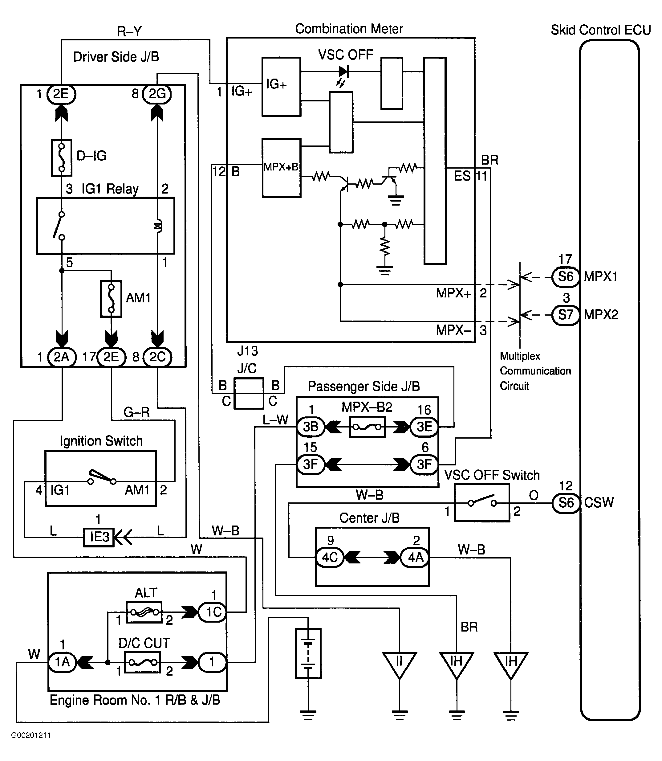 Fig 1: Wiring Diagram VSC OFF Indicator Light & Switch Circuit