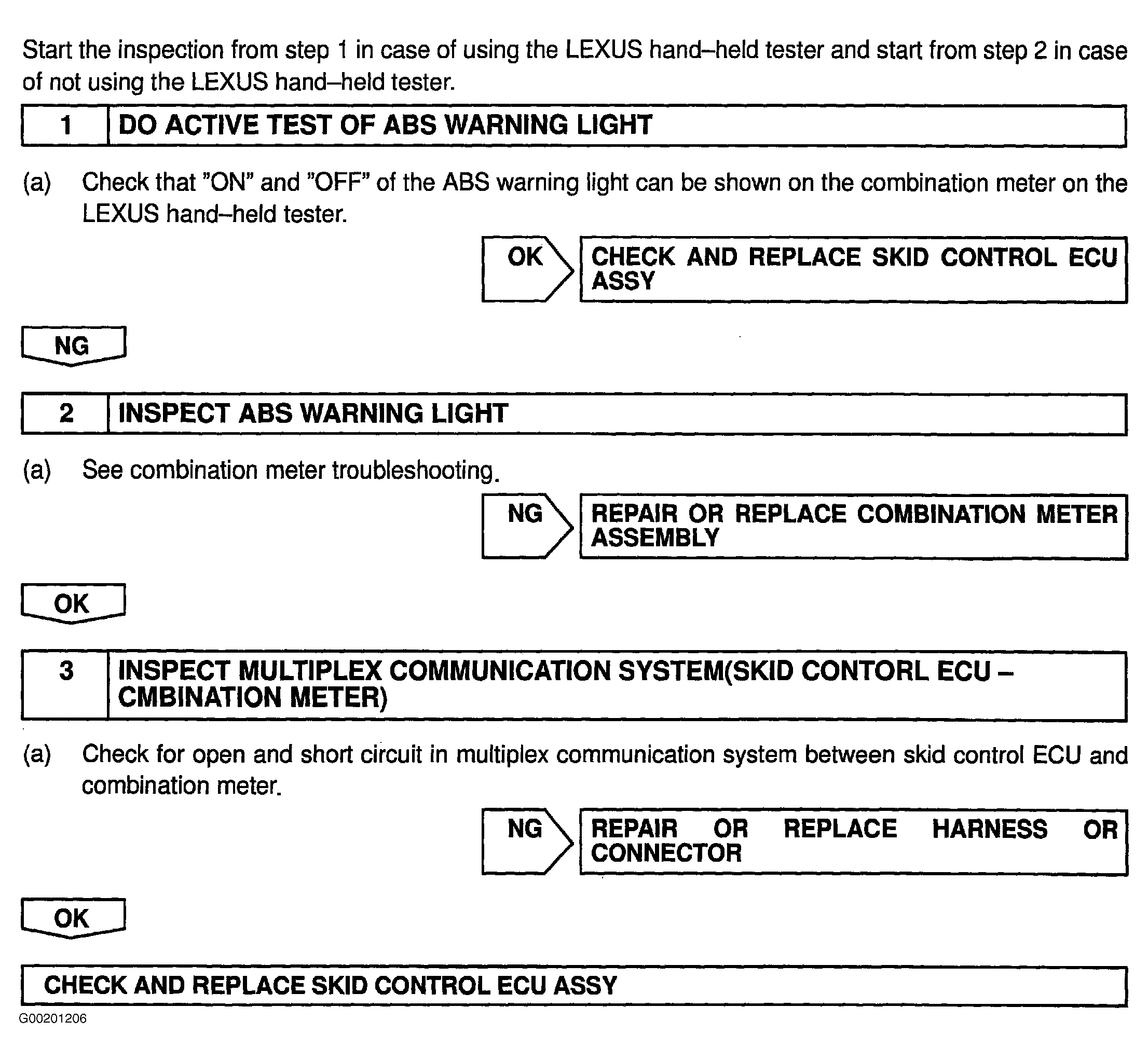 Fig 2: Testing Procedure ABS Warning Light Circuit