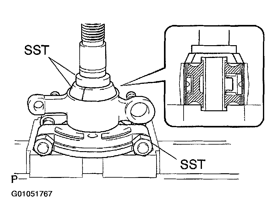 - Using SST and a press, reinstall a bushing as shown in the illustration.