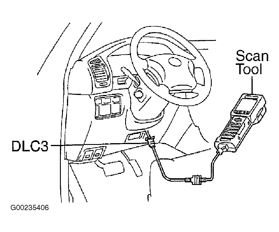 5. Connect scan tool to Data Link Connector (DLC) No. 3. See Figure. Scan tool is used to read throttle valve opening which is displayed as a percentage. Ensure Malfunction Indicator Light (MIL) on instrument panel is not illuminated. If MIL is not illuminated, go to next step. If MIL is illuminated, a Diagnostic Trouble Code (DTC) may be stored in Engine Control Module (ECM). Retrieve DTCs and perform appropriate diagnostic test. See SELF-DIAGNOSTICS - LX470 article.