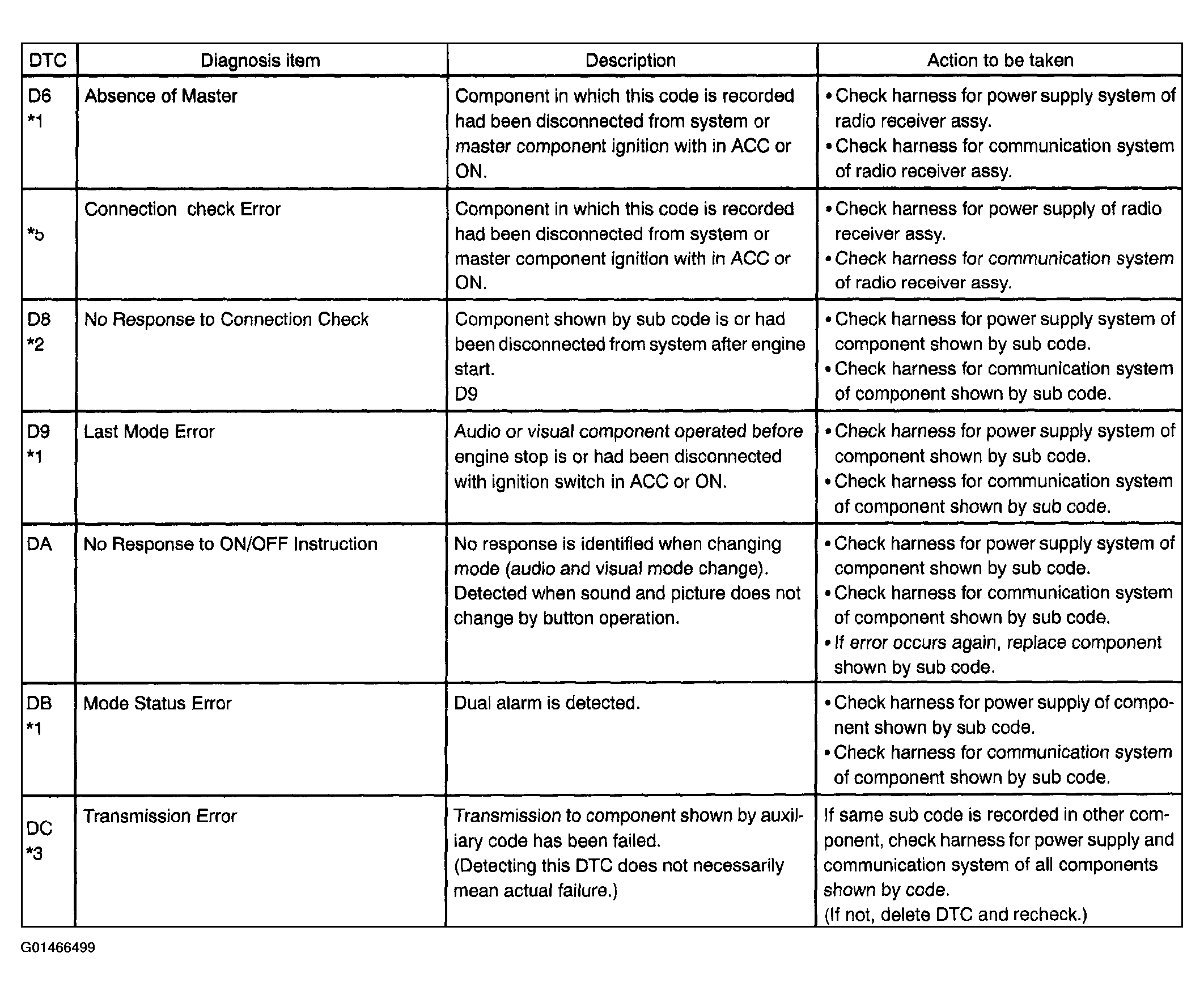 to determine the trouble area and proper inspection procedure. The Audio System diagnostic trouble code table is shown Fig 1