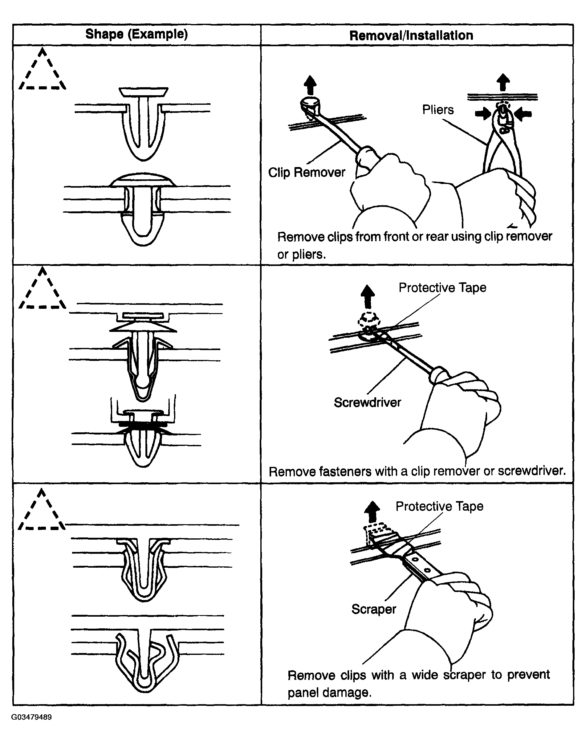 1. The removal and installation methods of typical clips used in body parts are shown in the Fig 5 .