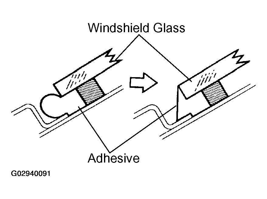 - Hold the windshield glass in place securely with a protective tape or equivalent until the adhesive hardens.NOTE: Take care not to drive the vehicle during the time described in TEMPERATURE & MINIMUM TIME PRIOR TABLE .TEMPERATURE & MINIMUM TIME PRIOR TABLE