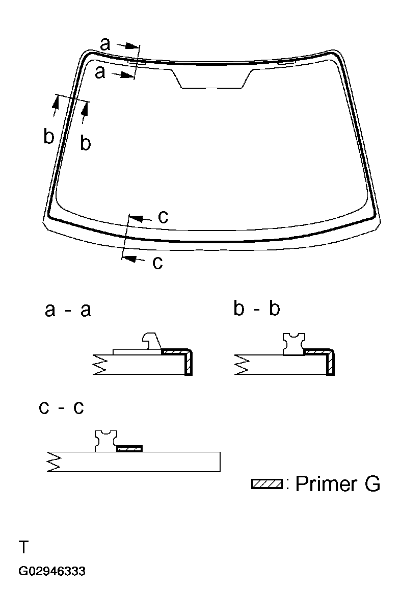 - Using a brush or sponge, coat the edge of the glass and the contact surface with Primer G as shown in Fig 9 .