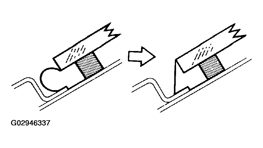 - Cut off the old adhesive around the stoppers installation area.NOTE: Be careful not to damage the body.