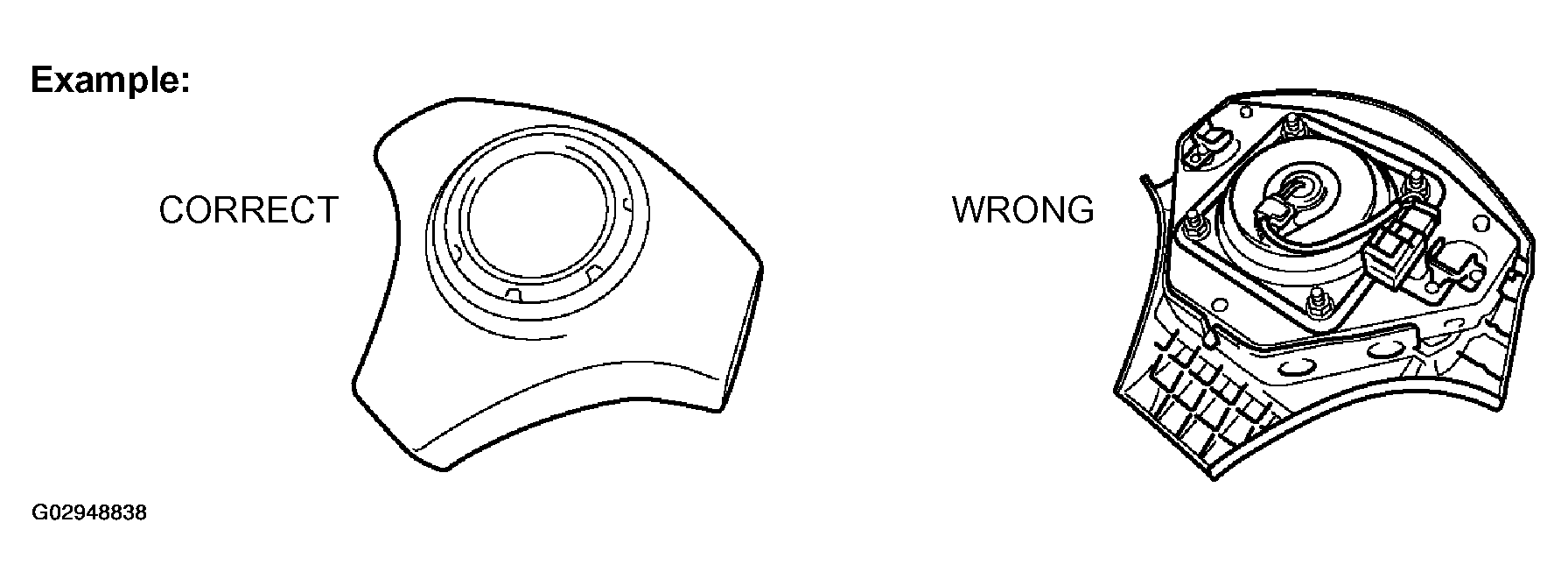 1. When removing the steering wheel pad or handling a new steering wheel pad, it should be placed with the pad top surface facing up see Fig 3 . Storing the pad with its metallic surface facing upward may lead to a serious accident if the airbag inflates. In addition, do not store a steering wheel pad on top of one another.