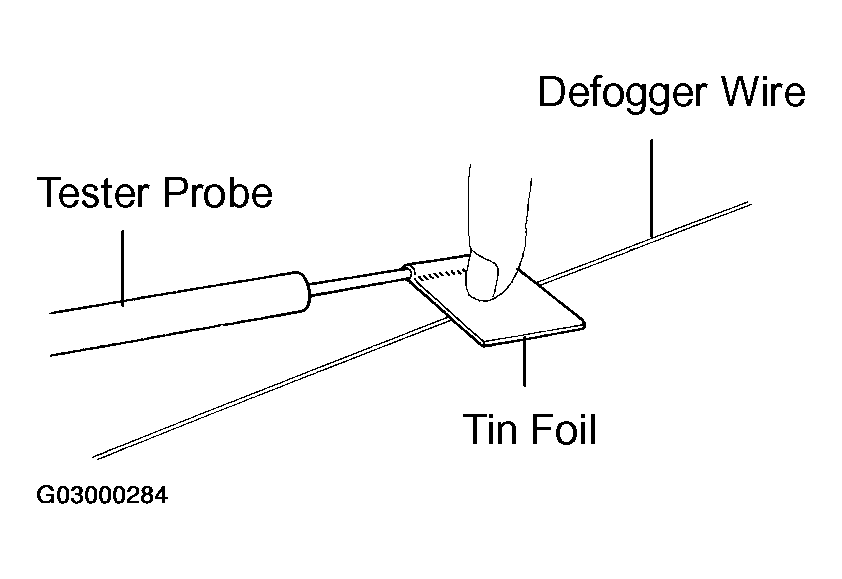 - Place the voltmeter's positive (+) lead against the defogger wire on the battery side.