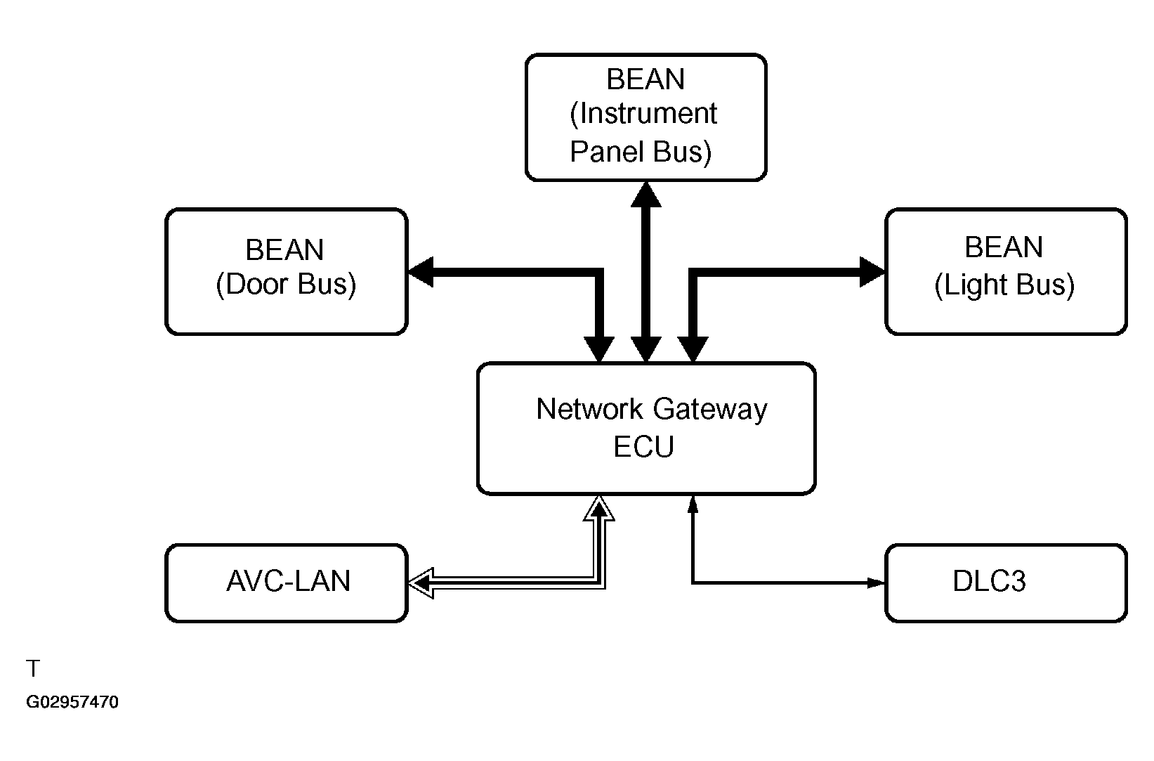 - The Gateway ECU connects the buses, AVC-LAN, and DLC3 (Data Link Connector 3), and manages the communication among them.