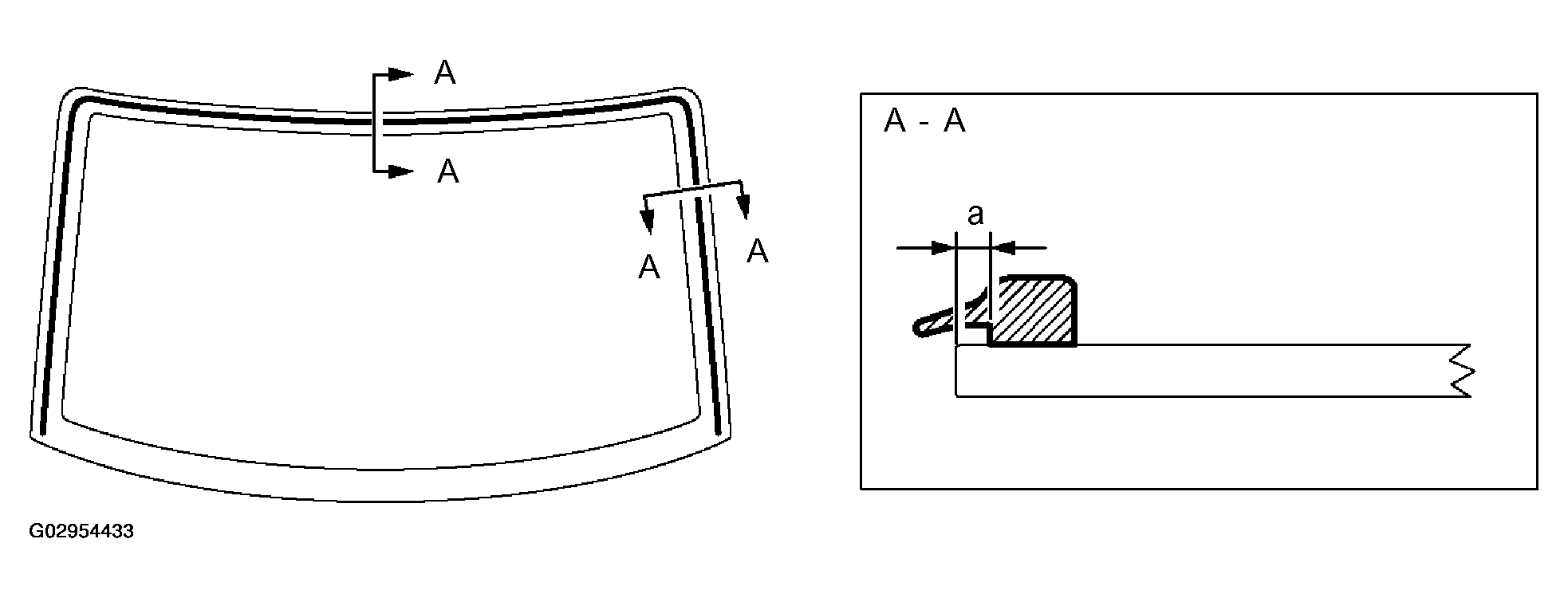 BACK WINDOW GLASS ADHESIVE DAMArea Measurement a 0.7 mm (0.028 in.)