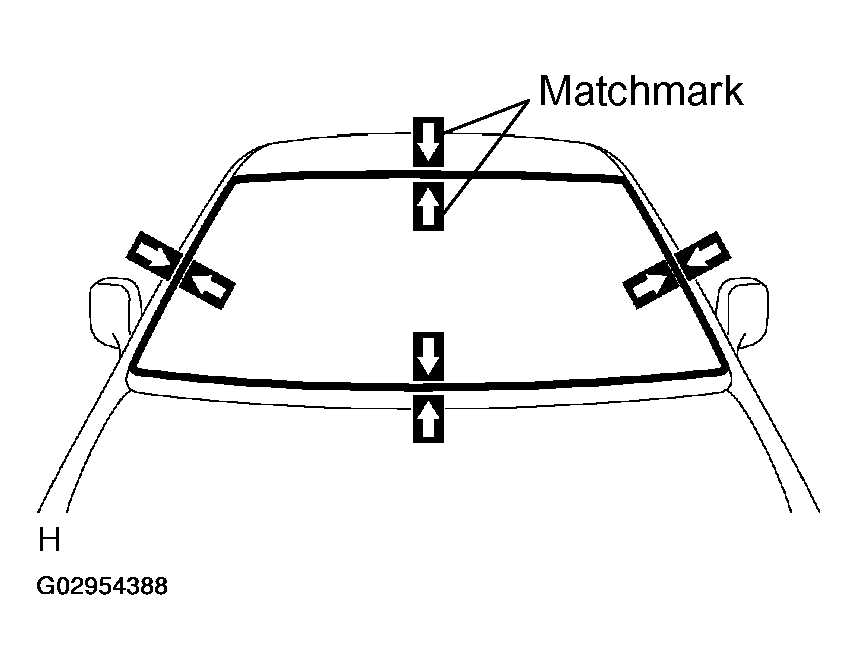3. Place matchmarks over the glass and vehicle body on the locations indicated.