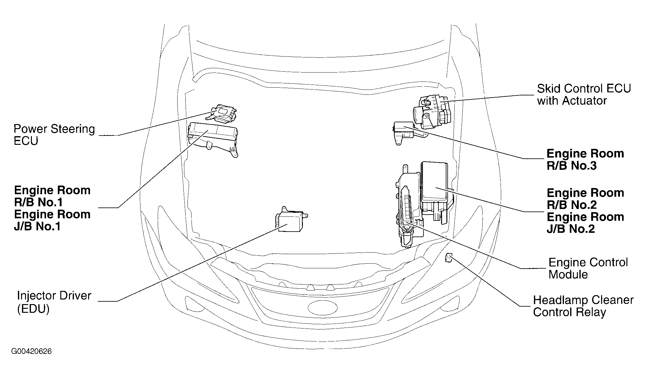 | Engine Room R/B No. 2 | Left side of engine compartment. See Figure. |