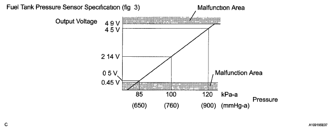 | Fuel tank pressure sensor | Converts fuel tank pressure into voltage and outputs that voltage ECM supplies a constant voltage of 5 V to pressure sensor and uses feedback from sensor to monitor fuel tank pressure (Fig 5) |