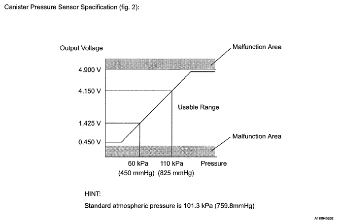 (b) Canister pressure sensor Indicates pressure as voltage. ECM supplies regulated 5 V to canister pressure sensor, and uses feedback from sensor to monitor EVAP system pressure (refer to Fig 5).