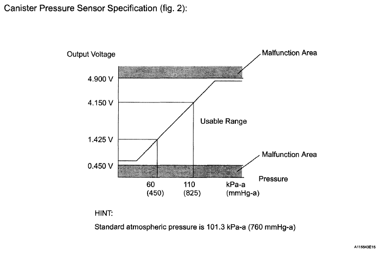 (b) Canister pressure sensor Indicates pressure as voltages. ECM supplies regulated 5 V to canister pressure sensor, and uses feedback from sensor to monitor EVAP system pressure (refer to Fig 5).