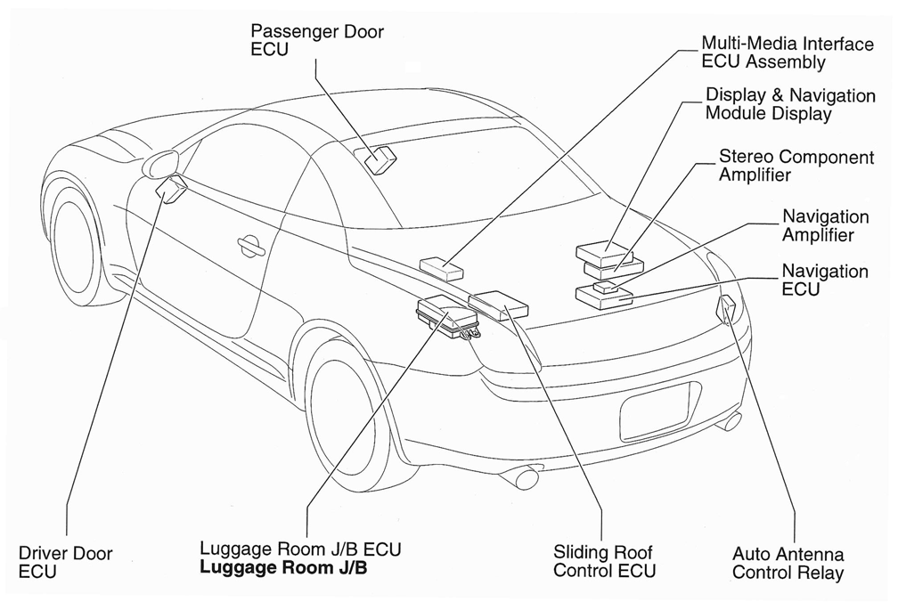 | Luggage Room J/B | Left rear of luggage compartment. See Figure. |