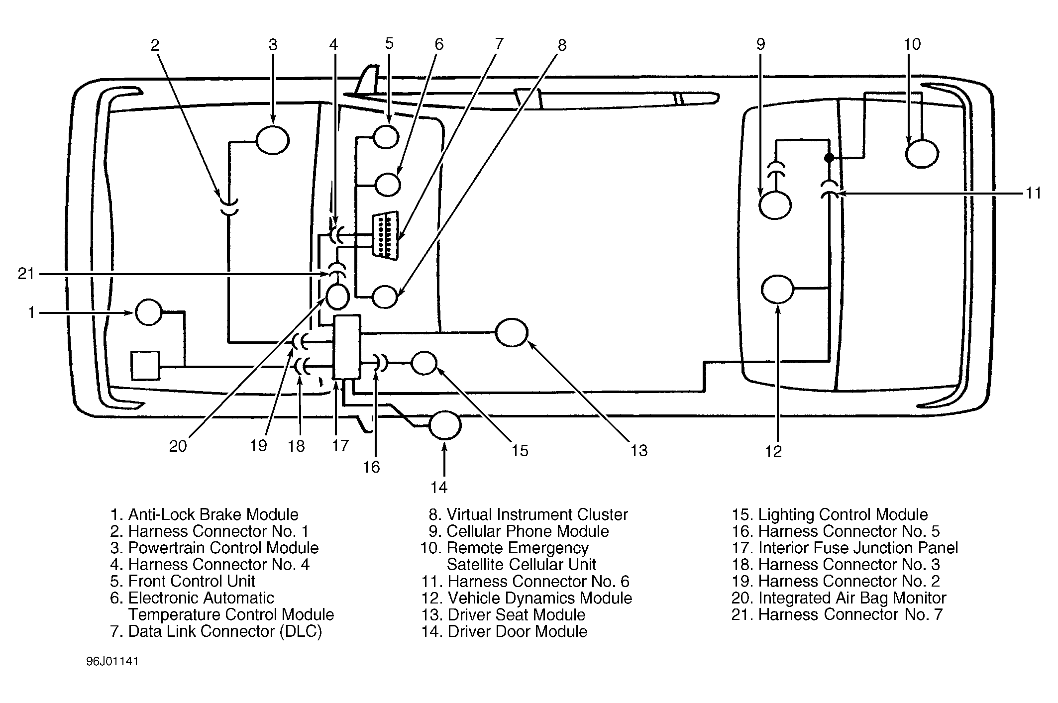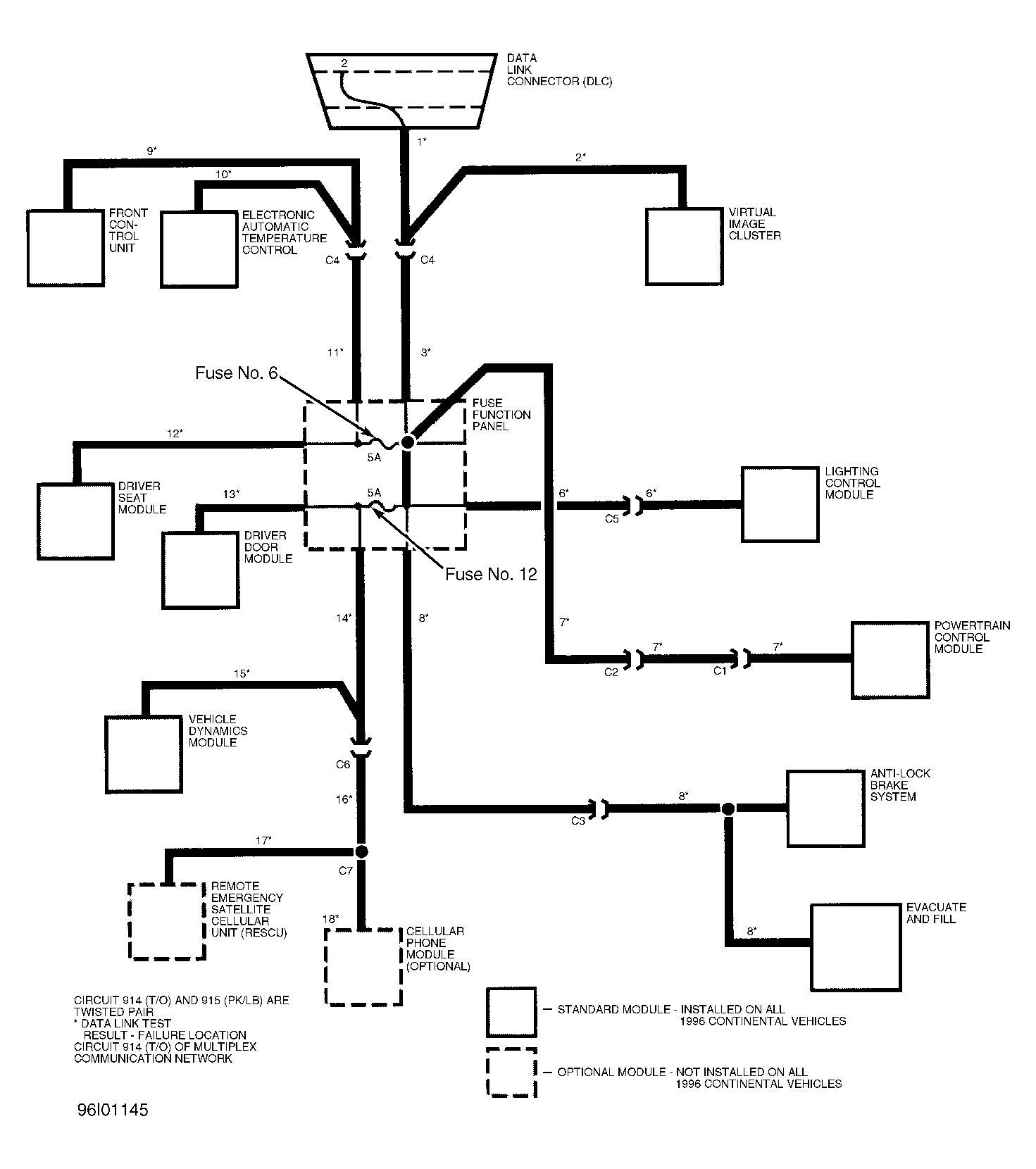 The module communications network is the means which up to 10 separate control modules can communicate with each other to carry out tasks that may require information or action from more than one module. The modules are linked to each other through a twisted wire pair called Data Bus Plus and Data Bus Minus. Data Bus Plus is also identified as circuit No. 914 (+). Data Bus Minus Is also identified as circuit No. 915 (-).