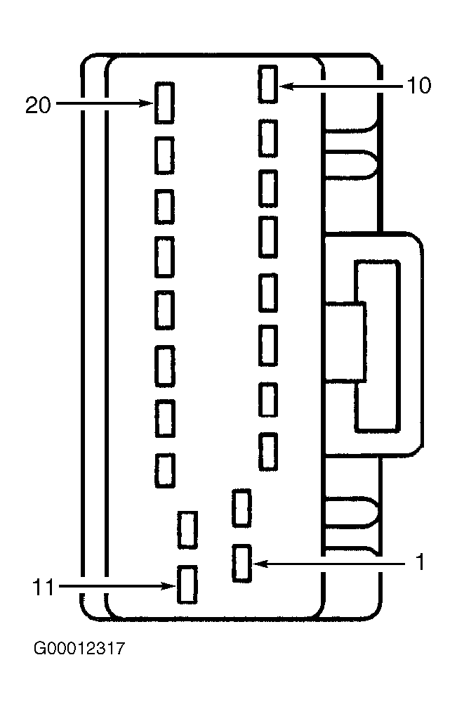 - Turn ignition switch to LOCK position. Disconnect FEM 17-pin harness connector C201a. Measure resistance between ground and Black/Red wires at FEM 17-pin harness connector C201a terminals No. 11, 13, 14 and 15. See Fig 3 . Measure resistance between FEM 12-pin harness connector C201c terminal No. 12 (Black/Red wire) and ground. If resistance are less than 5 ohms, repair module communications concern. See MODULE COMMUNICATIONS NETWORK - LS article. If any resistance is greater than 5 ohms, repair appropriate Black/Red wire and retest system operation.