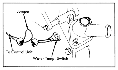 4. On automatic transmission equipped pickup, disconnect water temperature switch and connect a jumper wire to both connector terminals. See Figure. Start engine and set engine speed at 2000 RPM with choke knob.