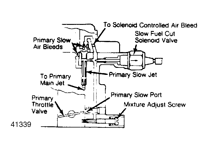 The slow fuel cut solenoid valve seals the primary slow fuel passage of the carburetor when the ignition is turned off or when all components of the system are off. See Fig 1 .