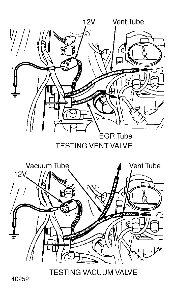 - Apply battery voltage to Brown/White wire terminal of connector and hook jumper wire from other Black/White terminal to ground. See Fig 1 . Blow air through manifold vacuum hose: Air should exhaust out vent tube.