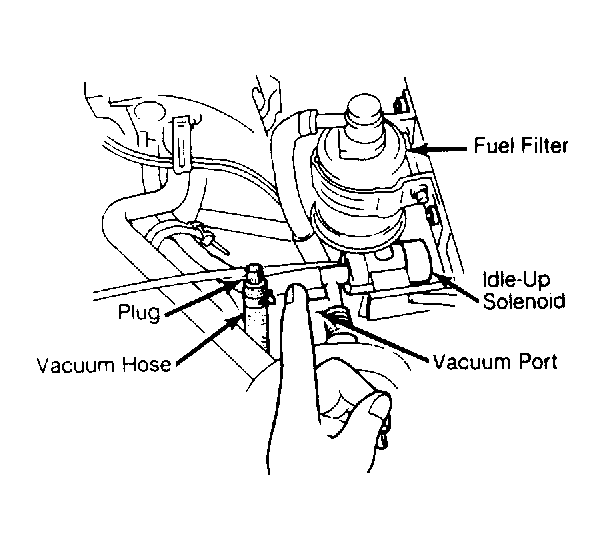 - Increase engine speed to 3000 RPM. Decelerate and ensure that a vacuum is present at idle-up solenoid port between 1500-2300 RPM. If vacuum is not present, test idle-up solenoid.
