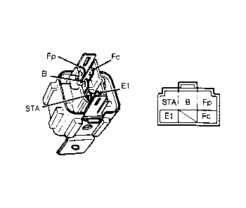 Terminal Condition Specifications Fp Resistance to Ground 0.2-30 ohms Fc Resistance to Ground (Cranking) Infinite B Voltage to Ground (Ign. On) Battery Voltage STA Voltage to Ground (Cranking) Approx. 9 Volts E1 Resistance to Ground Infinite - With circuit opening relay removed, apply 12 volts to terminal STA of relay. Ground terminal E1. Ensure continuity from relay terminals B to FP.