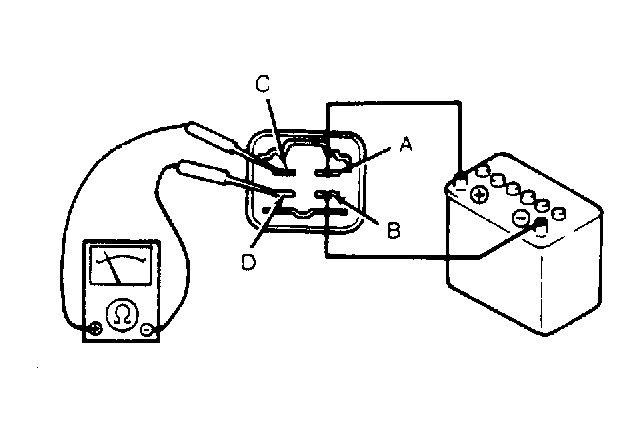 - Ensure there is continuity between main relay terminals C and D, when voltage is applied. There should be no continuity when voltage is not applied.