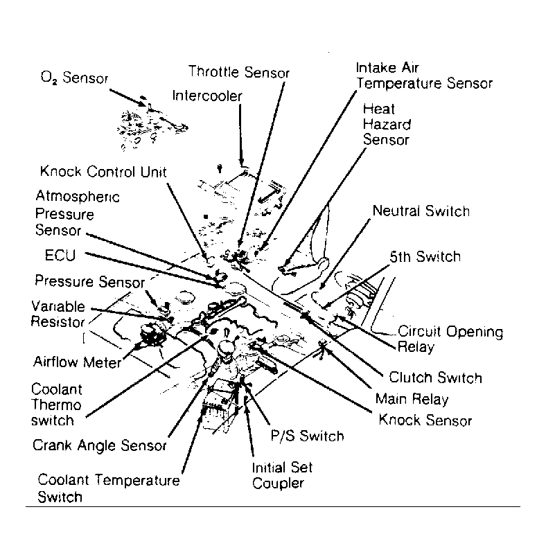 2. On all models, disconnect throttle sensor connector. See Fig 1 . On turbo models, reinstall intercooler. On all models, start engine and allow to idle. Self-diagnosis checker should read trouble code 06 with monitor light on.