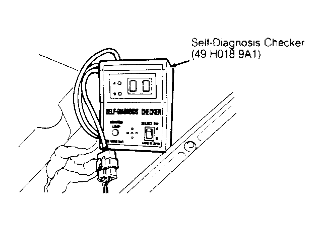 1. Connect self-diagnosis checker to connector. See Figure . Place select switch in the "B" position. Disconnect neutral switch connector. Operate engine at idle to normal operating temperature. Shut off engine. On turbo models, remove intercooler. See Figure .