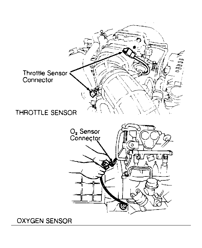Fig 1: Throttle Sensor & Oxygen Sensor Connector Locations