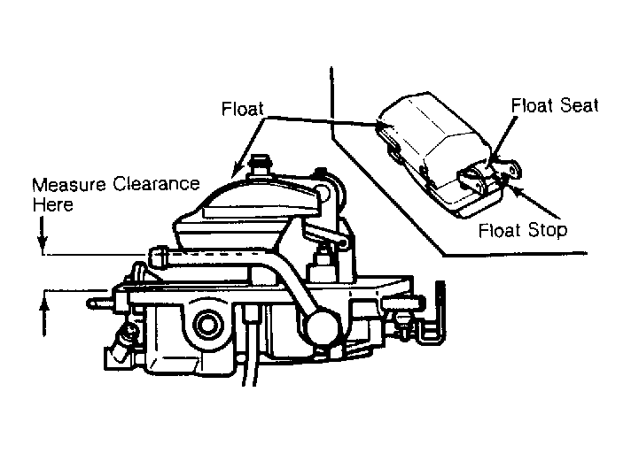 2. Remove air horn from carburetor. Remove gasket from air horn. Invert carburetor and allow float to hang by its own weight. Measure clearance between top of float and air horn. See Fig 1 .