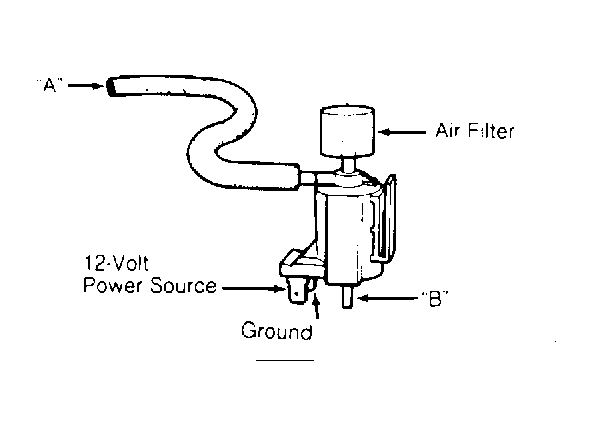 - Unplug solenoid valve connector. Connect 12 volts and ground to solenoid terminals. Blow through solenoid from port "A". Air should exhaust through valve air filter. Replace solenoid valve if it does not pass test.