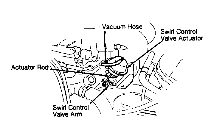 Warm engine to normal operating temperature. Run engine at idle. Verify swirl control valve actuator rod is retracted into swirl control valve at idle. See Figure . Gradually increase engine speed and verify rod extends at speeds greater than 4000 RPM. If necessary, check following components listed under this heading:
