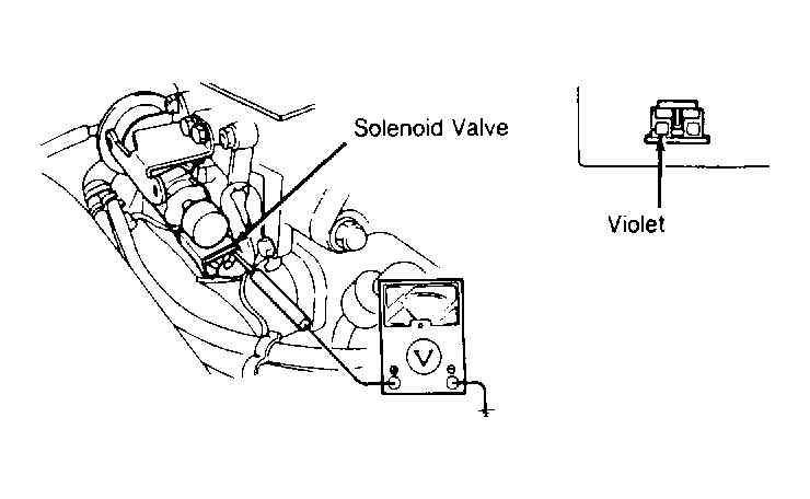 Connect voltmeter to Violet terminal of solenoid valve. See Figure . Ensure voltmeter reading is within specifications throughout RPM range. Replace solenoid valve if not within specifications. See VRIS RPM VOLTAGE SPECIFICATIONS (SOHC) table.