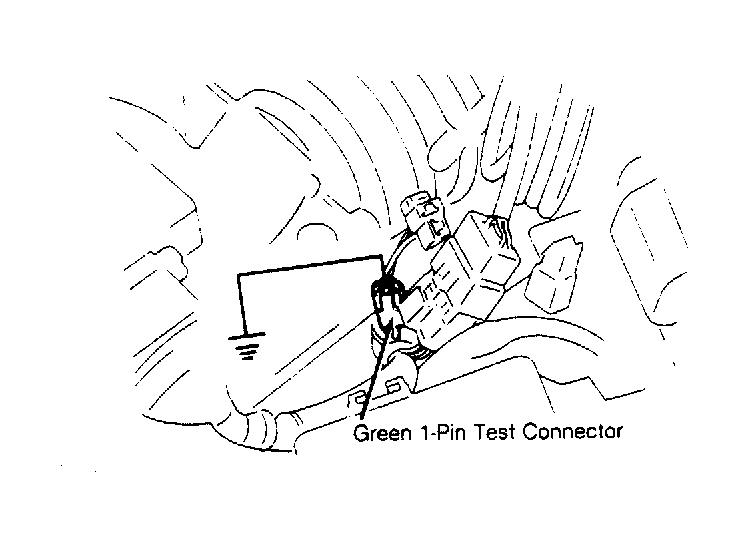 - Using jumper wire, ground Green 1-pin connector. Connector is located at left front wheelwell. See Fig 1 .