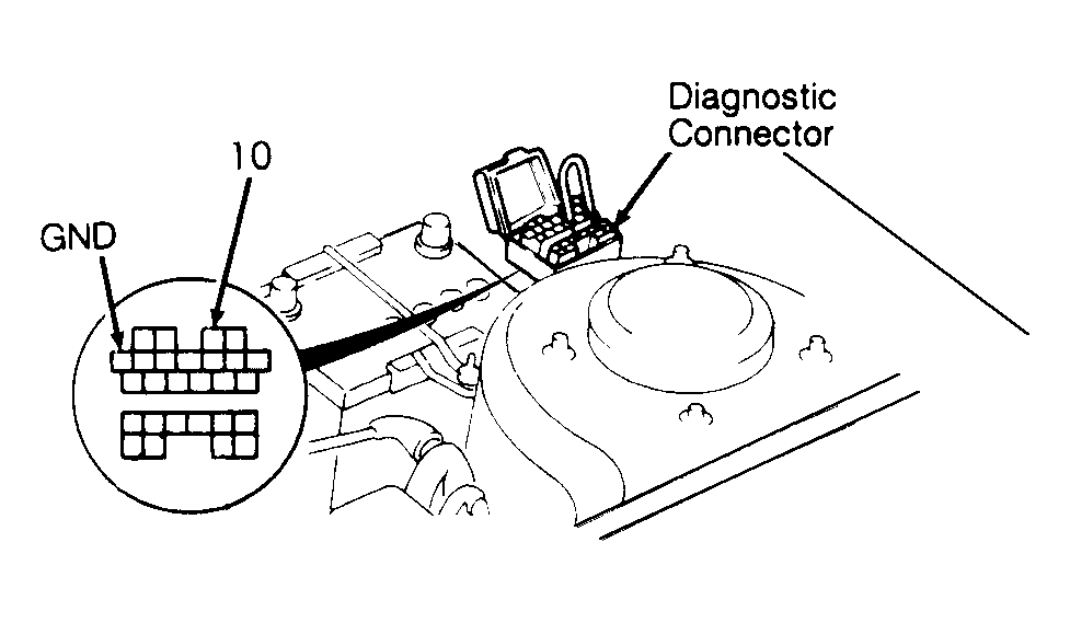 - Connect jumper wire between diagnostic connector terminals TEN and GND. See Figure . Diagnostic connector is located at left front wheelwell.