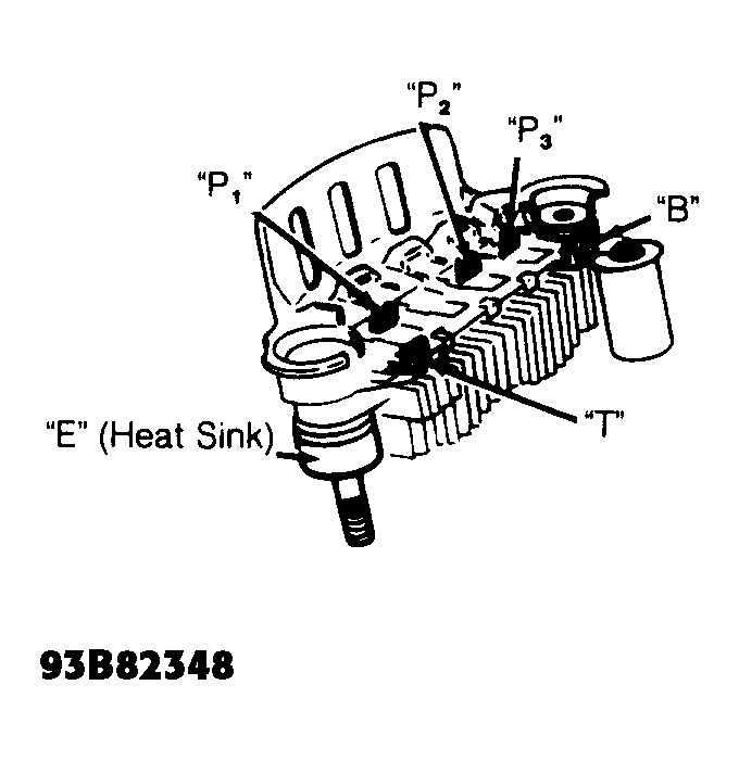 - If diode shows low resistance in both directions, diode is shorted. If diode shows high resistance in both directions, diode is open. If any diode is defective, replace rectifier assembly.
