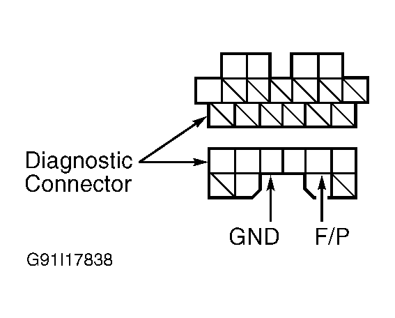 Connect jumper wire between GND and F/P terminals of data link connector. See Fig 1 . Turn ignition on for about 10 seconds and then off. Disconnect jumper wire.