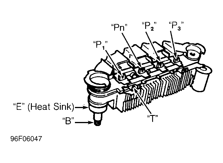 - If diode shows low resistance in both directions, diode is shorted. If diode shows high resistance in both directions, diode is open. If any diode is defective, replace rectifier assembly.