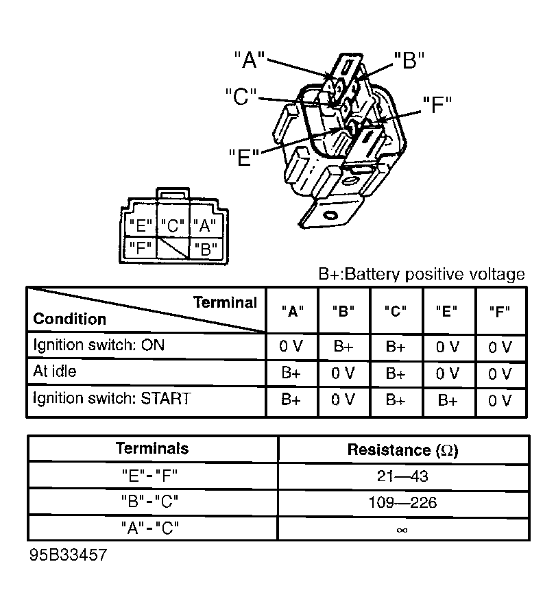 With relay connected, ensure specified voltage is present at relay terminals. See Fig 1 . For location of fuel pump relay, see the FUEL PUMP RELAY LOCATIONS table. If voltages are okay, remove relay from vehicle. Check relay operation using a 12-volt battery source and perform resistance tests. See Fig 1 .