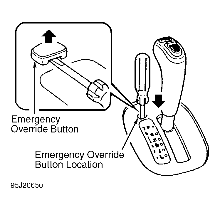 models, place gear selector in Park. Using a screwdriver, push down
