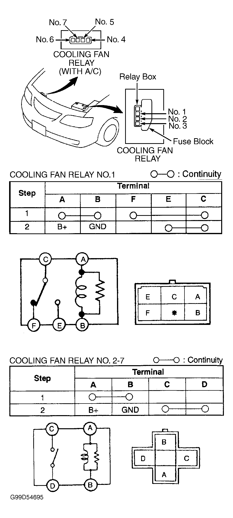 Home >> Mazda >> 2000 >> MPV ES >> Repair and Diagnosis >> Engine Performance >> System >> Engine Controls - System & Component Testing >> Emission Systems & Sub-Systems >> Cooling Fan Control Inspection (MPV) >> With A/C