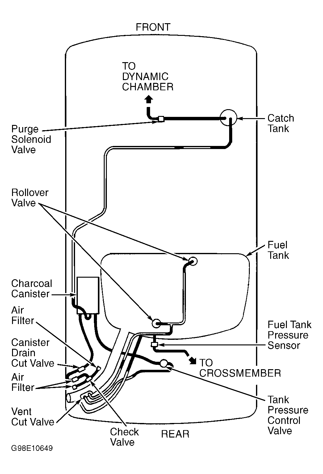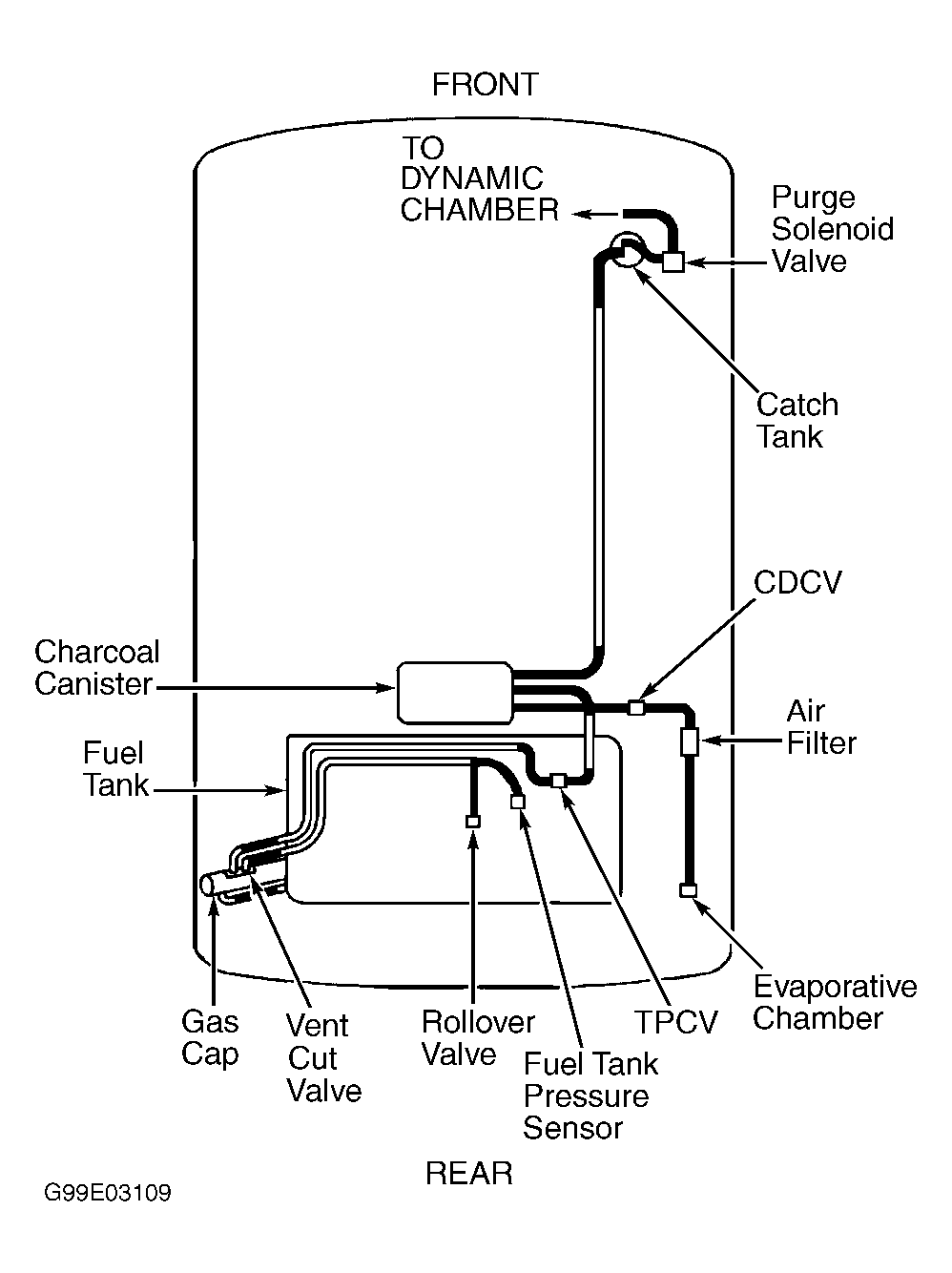 Purge system operation takes place when vehicle is accelerating in gear (off idle), engine is at operating temperature and oxygen sensor is functioning normally. Ensure all vapor lines are connected and in acceptable condition. See Fig 1 , Fig 2 or Fig 3 .